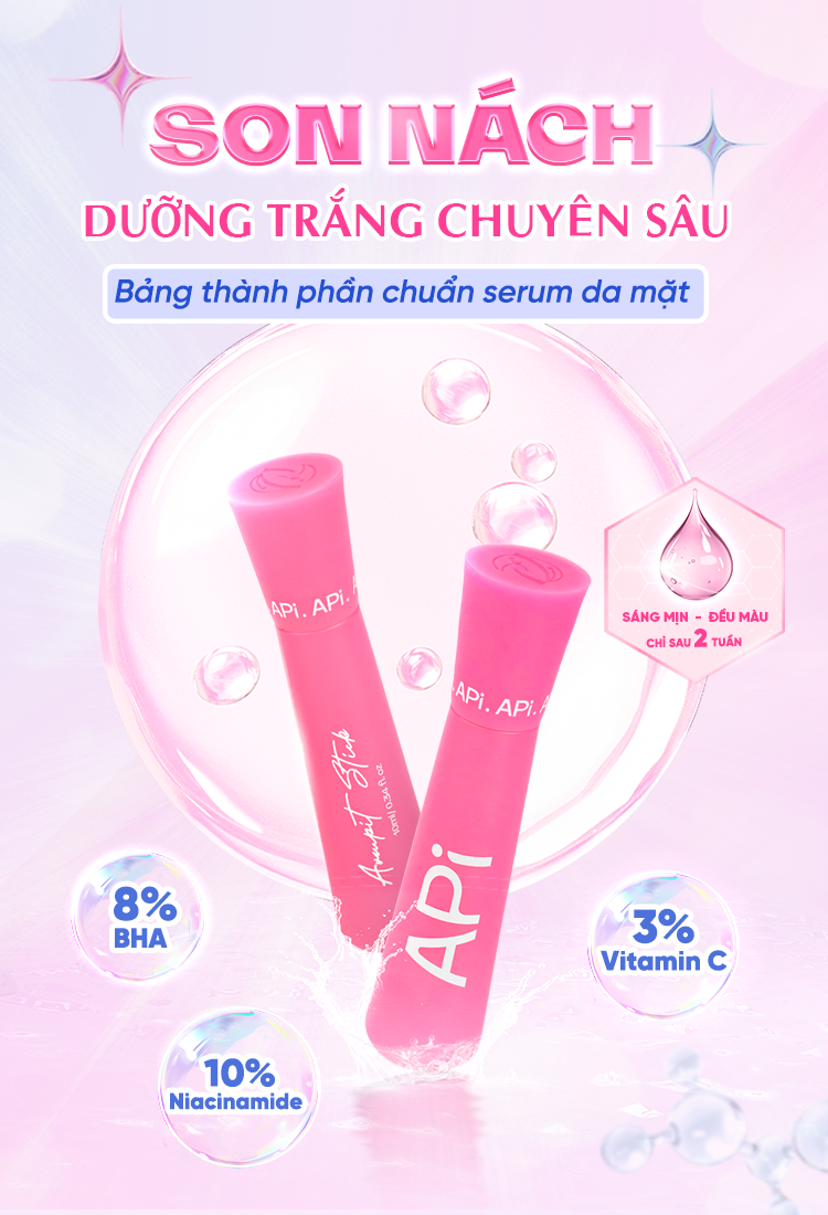Son dưỡng nách APi giúp làm sáng da, khử thâm hiệu quả vùng da dưới cánh tay. Công thức đặc biệt giúp loại bỏ các vết thâm sạm chỉ sau một thời gian ngắn sử dụng.