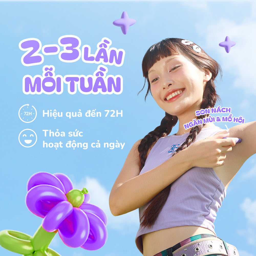 Sản phẩm ngăn tiết mồ hôi, khử mùi vượt trội trong 72 giờ, mang lại cảm giác khô thoáng, tự tin và dễ chịu cho mọi hoạt động hàng ngày.